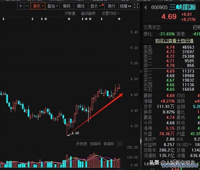 三峡能源,近期表现平稳,节后至今的涨幅并不明显,在经过修整之后,最近又开始往上走,但力度并不明显;均线的多头排列形态很良好,30日线已经往上靠拢到4.5附近,即便后面随着市场出现调整,空间也很有限,到30日线就行了。